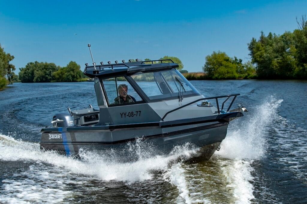 De motor loopt soepel en rustig, maar biedt een enorm koppel. Voor hengelsport is fijn dat de motor standaard trolling control heeft. De cabine vormt wel een klankkast, maar tjonge jonge, wat vaart deze visboot gemakkelijk.