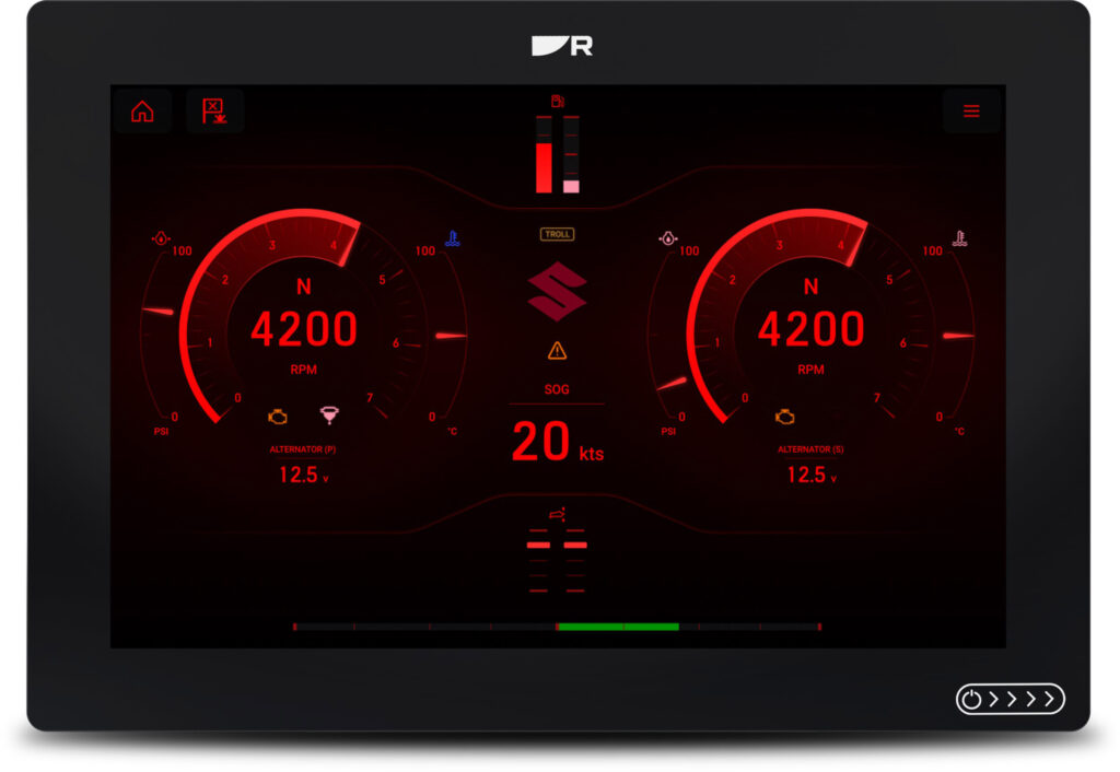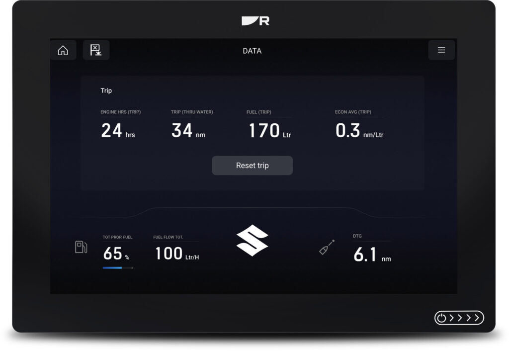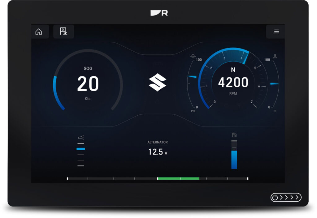 Deze gegevens worden volledig geïntegreerd in een native Raymarine Suzuki-applicatie, die beschikbaar is op alle Axiom-displays met LightHouse 4.10 of hoger. De app bevat een uitgebreide datapagina en een motorinstrumentendisplay, waarbij alle Suzuki-waarschuwingen en meldingen direct worden weergegeven – voor maximale betrouwbaarheid en veiligheid op het water.