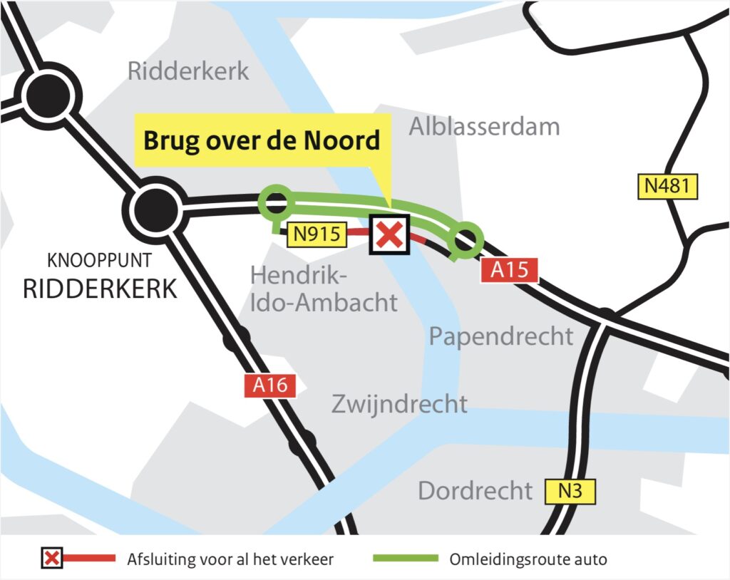 Rijkswaterstaat start eind november 2025 met een renovatie van de Brug over de Noord (N915). Alle systemen en technische installaties voor bediening, besturing en bewaking van de brug worden vernieuwd. De werkzaamheden duren naar verwachting tot voorjaar 2026. In deze periode is het regelmatig nodig de brug af te sluiten voor al het weg- verkeer. Dat gebeurt in weekenden en tijdens een 16-daagse afsluiting rondom de voorjaarsvakantie van 2026. De hoge scheepvaart ondervindt dan ook hinder.